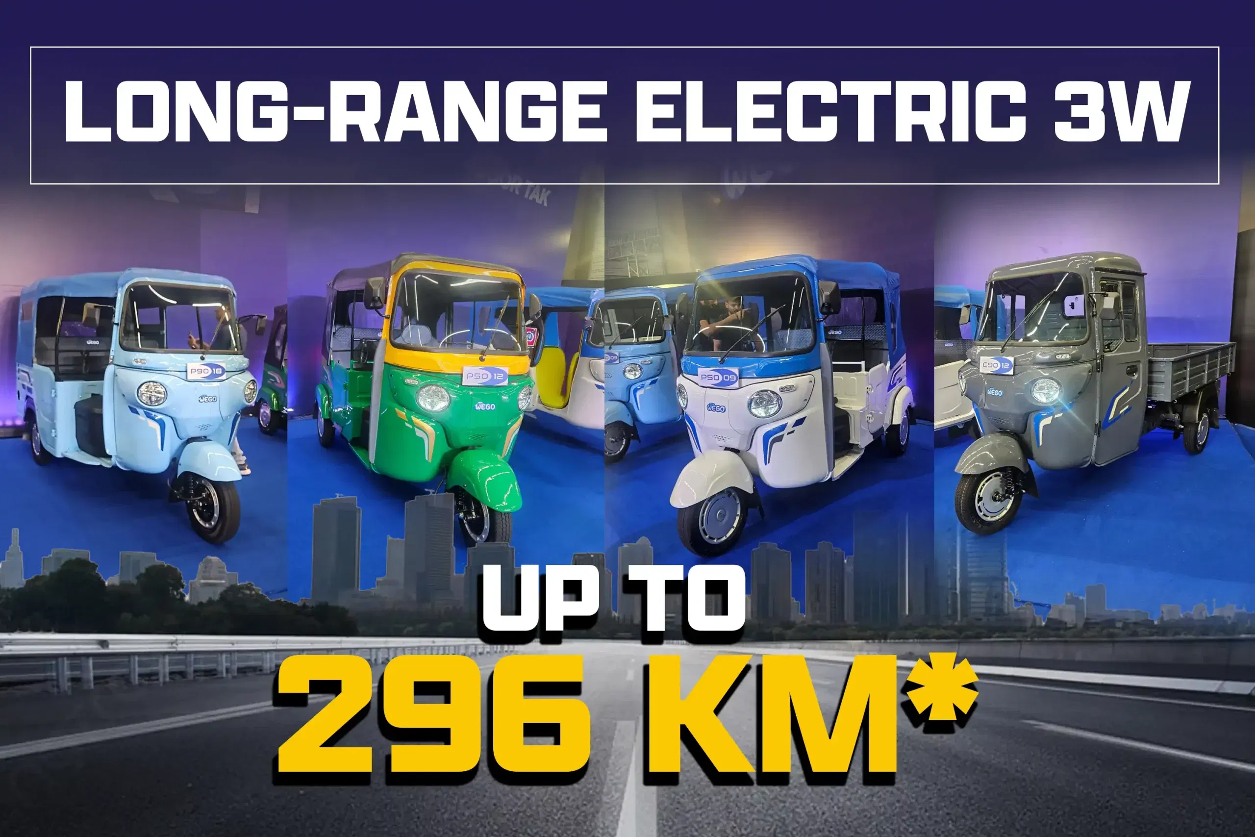 The P90 division has the most range with the P9018 at 296 Kilometers claimed range; they claim this is also the longest claimed range in this market (category).